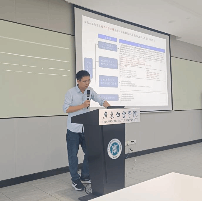 培训分为两场线下讲座,采用 “北校区主会场 + 西校区线上同步” 模式。7月1日,首场讲座《人工智能通识课程教学体系构建与基础理论深化》如期举行。苏康友老师围绕 “跨学科公选课教学特点”“课程目标实现路径”“考核体系设计” 等模块,深入解析课程定位与教学体系构建,重点阐述如何应对非计算机专业学生知识差异,增强课程适应性与针对性;李晁铭老师则系统讲解人工智能定义、类型、发展概况,以及机器学习、深度学习、计算机视觉等基础理论,为教师夯实理论根基。