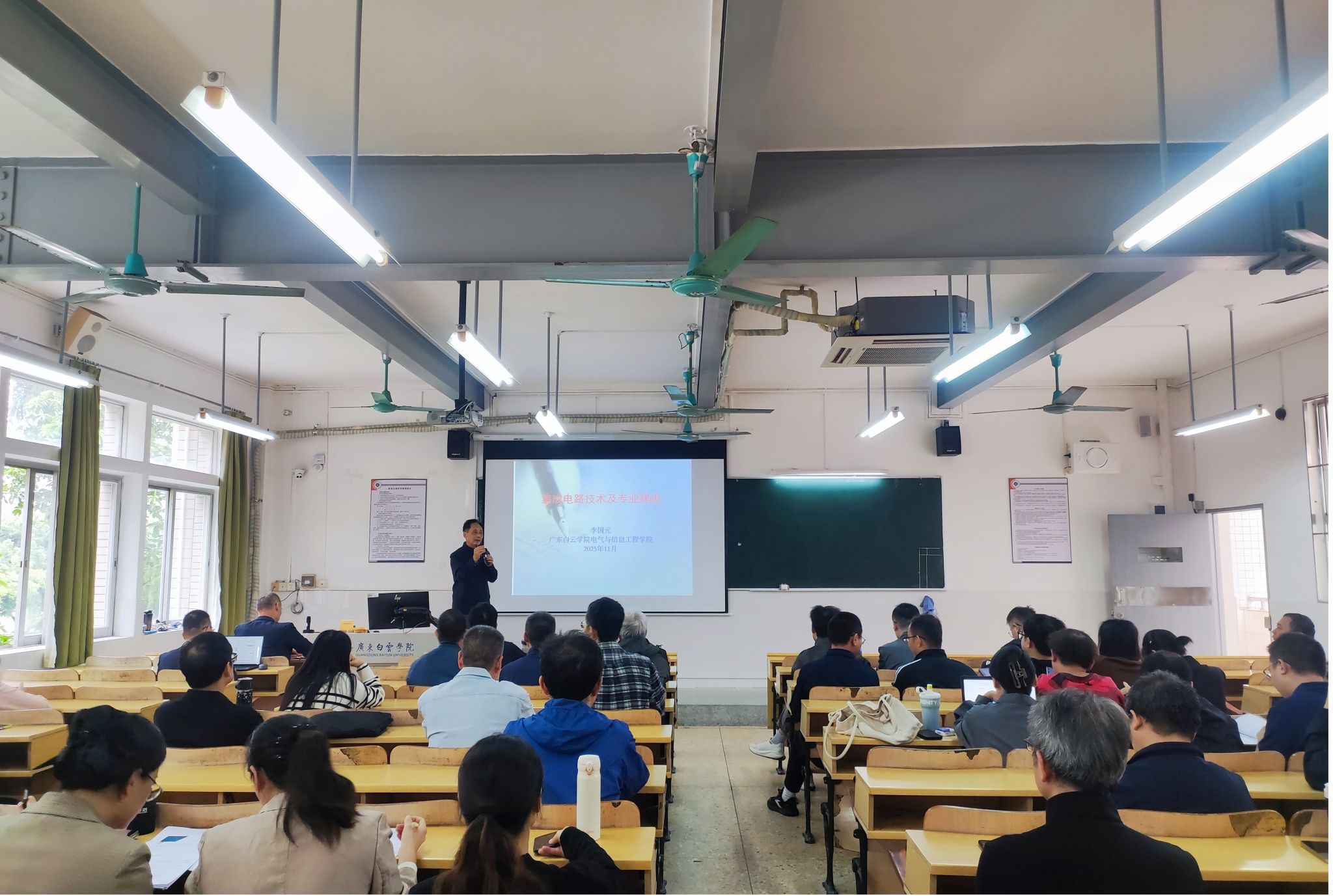 2025年11月13日下午,电气与信息工程学院在至善310举办《集成电路技术及专业建设》专题讲座。本次讲座特邀请电气与信息工程学院集成电路设计与集成系统专业负责人、银龄教师李国元教授主讲。李教授聚焦集成电路领域核心技术与专业建设关键方向,以“产业发展趋势+详细教学路径”双线并进,图文并茂,层层递进,为高校精准对接产业需求、优化人才培养体系提供了清晰指引。