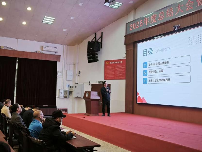 2025年12月26日下午,西校区儒学堂气氛庄重而热烈,电气与信息工程学院、华为ICT学院及工程实验中心在此联合隆重召开2025年度中层干部述职暨年终总结大会。