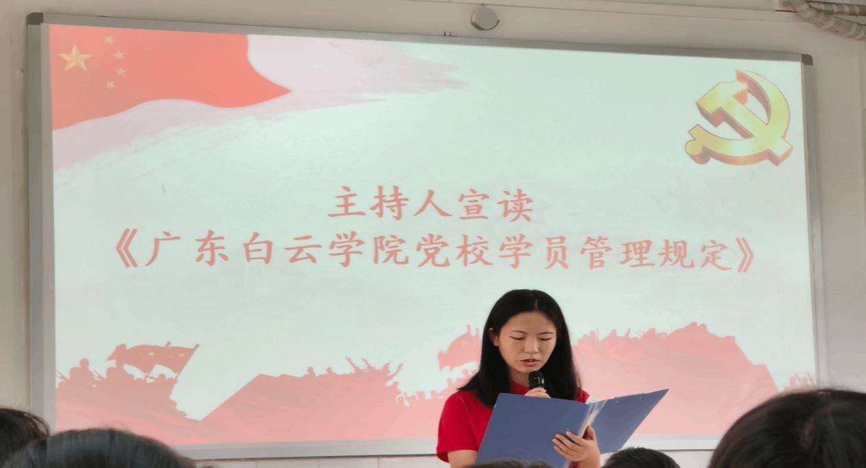 典礼上,主持人宣读了《广东白云学院党校学员管理规定》,明确培训纪律、考勤要求、考核标准及结业事项,强调责任与担当,要求全体学员严格遵守规定,以确保培训学习的质量和效果。(图文/电气与信息工程学院谢朋涛 魏婧冉 何美晨)