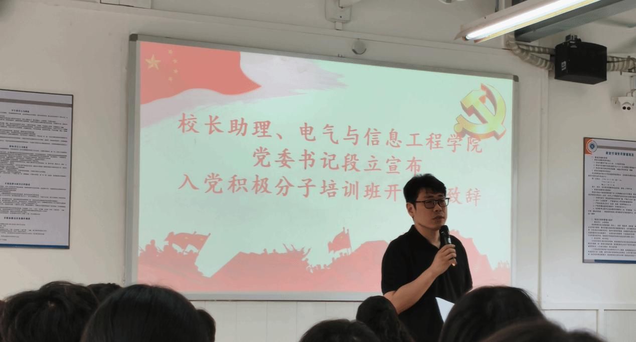 典礼在庄严的《国歌》中拉开帷幕。段立书记宣布培训班开班并致辞。他首先向参加本次培训班的全体入党积极分子,表示诚挚的祝贺!他表示举办本次培训班,既是党组织落实党员发展工作要求、严把党员入口关的重要举措,也是帮助大家系统学习党的理论、提升政治素养、明确入党初心的关键途径,希望大家倍加珍惜这次难得的学习机会,认真学习、深入思考、锤炼品格,努力向党组织靠拢,争取早日成为一名合格的共产党员。