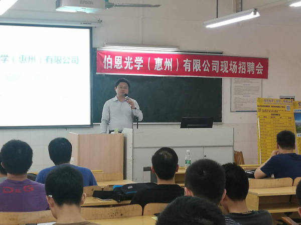 6月8日下午,伯恩光学(惠州)有限公司招聘部叶经理带领招聘团队,在我校思齐楼1-310教室为电气学院自动化专业、机电学院自动化及设计及外国语等约120多位学子举行了主题为“勇敢新世界”的招聘宣讲会。宣讲会上就伯恩光学(惠州)公司的发展平台、薪酬和机遇对同学们做了详细的介绍。