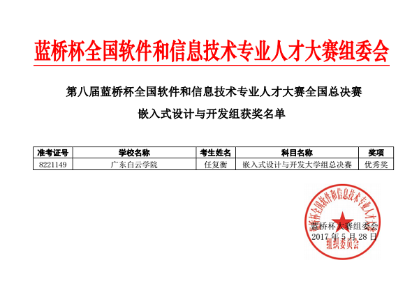 5月27日,电气与信息工程学院学生在专业教师的带领下参加了第八届“蓝桥杯软件和信息技术专业人才比赛”全国总决赛。经过激烈比赛,荣获国家优秀奖。