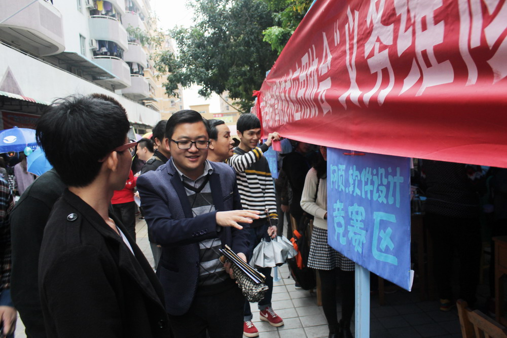 PS设计现场竞赛区,参赛选手现场选择考题,由工作人员提供素材让选手运用ps技术进行操作,展示同学们对PS的熟悉程度及对图片的处理能力。网页软件设计竞赛区由同学们携带自己部分基础作品进行设计处理,充分展示自己对网页代码及相关的软件的驾驭能力和设计的独特的想法,表现出个人独特的创新思维。计算机义务维修区由计算机应用技术协会人员为一些故障电脑进行现场维修,展现出不俗的技术和计算机维修知识。计算机知识宣传区的活动是宣传一些常见的计算机问题的处理方法。家电义务维修区的活动是现场义务维修家电活动,并对基本的维修知识进行科普宣传,考察学生对专业知识的掌握程度。电子获奖作品展览区展示出我院学生外出参赛的优秀获奖作品,充分展现了同学的动手创新能力。其中优秀作品展览区中分为软件类、多媒体类、PS类、网站类四块。