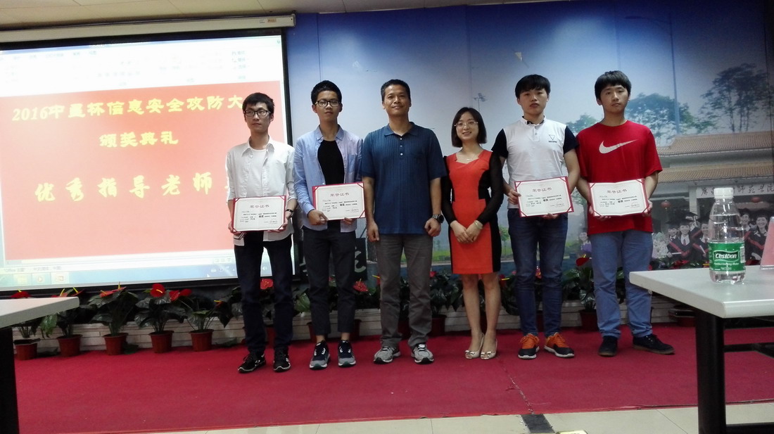 本次“中星杯”网络攻防大赛广州赛区选拔赛采取CTF竞赛模式,20多所本科高校的26支队伍参赛,要求选手在限定的时间内完成设置的相应分值的任务。我院2014级计算机科学与技术专业有20多名同学参加了校内选拔赛,叶浩杰等4名同学脱颖而出获得省赛参赛权。在指导老师李春平、肖建宏等老师的带领下,经过强化培训,4名同学组成2支队伍参与广州赛区竞赛,其中叶浩杰、曾祥锟组成的“火力全开队”在比赛中沉着冷静、不畏强敌,成功斩获省二等奖;曾诗明、谢利辉组成的“红鲤鱼与绿鲤鱼与驴”队在赛中全力发挥,最终荣获省三等奖。而李春平、肖建宏老师由于宣传到位、指导有力,获得省优秀指导老师奖。