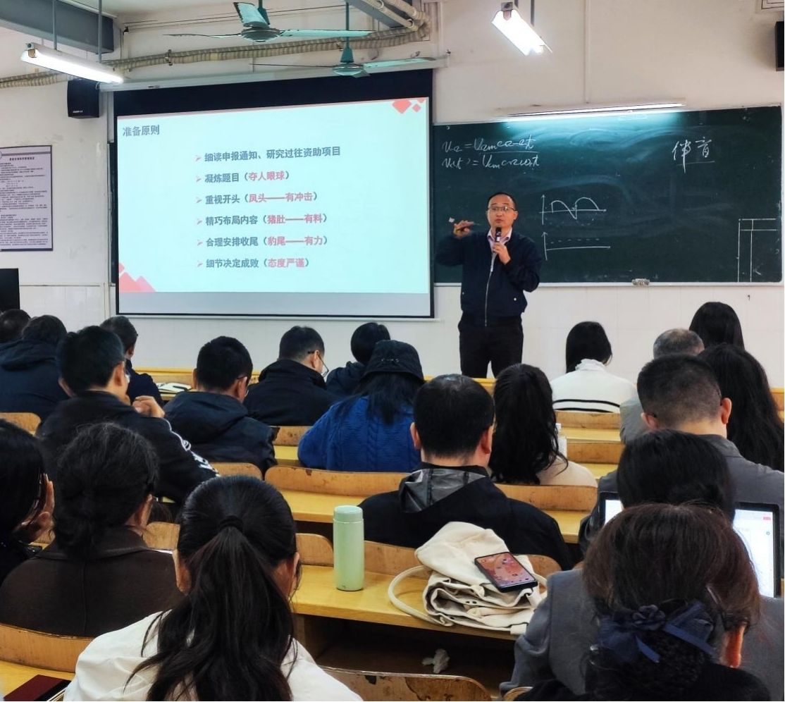 12月25日下午,电气与信息工程学院及华为ICT学院副院长张永棠教授为全体教师带来了一场题为《从“好想法”到“好项目”:课题的设计与申报分享》的专题讲座。张教授以他2025年获批教育部人文社科研究规划项目为实例,深入剖析了课题申报的核心逻辑与成功关键。
