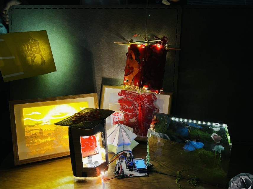 大赛设置三大主题赛道,引导学生将传统文化与专业学习、时代议题相结合。科技光影赛道鼓励融入电路、芯片等元素,体现工科特色;环保再生赛道要求使用废旧报纸、纸箱等材料,倡导绿色理念;非遗融合赛道推动剪纸与醒狮、英歌舞等岭南非遗项目结合,探索传统技艺的现代表达。