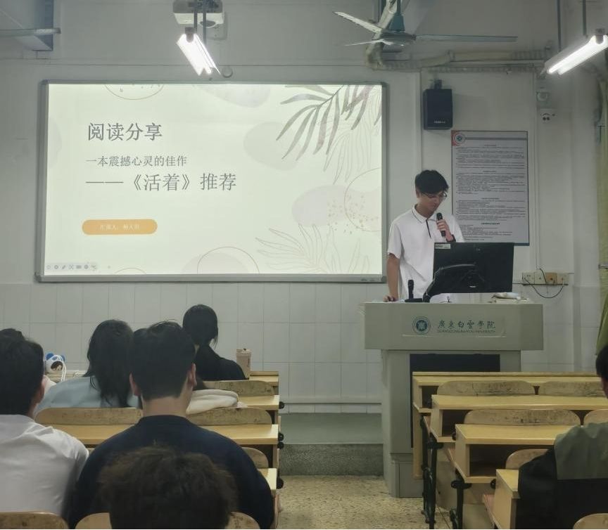 活动伊始,三位同学分别通过《平凡的世界》《活着》《三体》三本经典作品进行分享,将各自对所读书籍的独特见解娓娓道来。分享者们借助生动的情节解析与个人的生活经历,不仅呈现了对文本的深刻领悟,还激发了在场同学的思索与共鸣。现场的氛围因他们的热情而越发浓郁,似乎每一个词句都在触动着心灵的波澜。