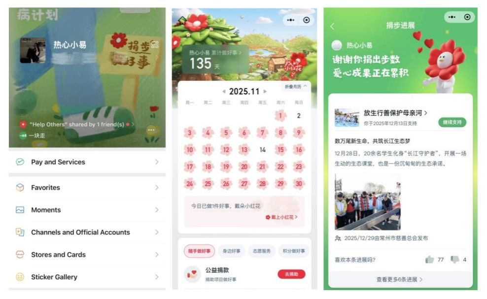 活动采用“运动+公益”融合模式,参与者通过“一块走”小程序每日完成1.5万步以上捐步,并提交捐步记录及团队接龙数据。所有步数累计兑换为公益资金,一张张捐步截图、一朵朵绽放的“微信小红花”,记录下的不仅是一万五千余步的运动量,更是同学们日复一日的毅力与承诺。