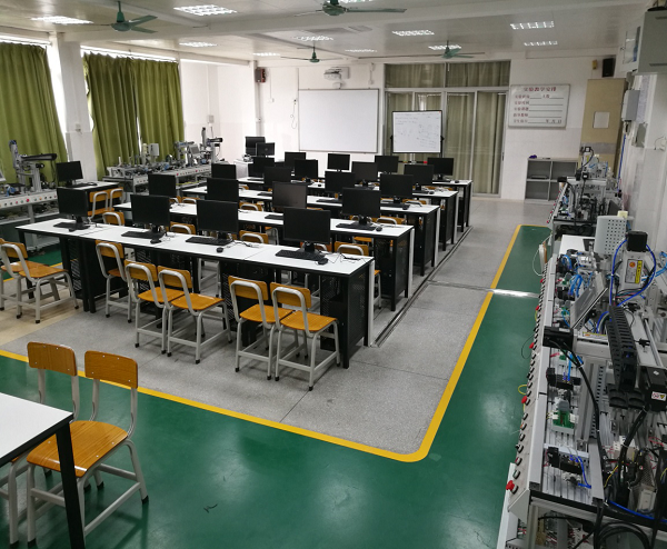 自动化实验室:自动化实验室包括:可编程序控制系统实验室、电梯技术室、电力电子技术室、过程控制技术室、PLC及变频技术室、自动化综合室、组态控制室。主要开设了可编程序控制原理与应用、电梯技术、电力电子技术、过程控制技术、组态控制、变频技术课程实验和课程设计等实践教学任务。还承担了全校机电类学生维修电工高级工考证、维修电工技师和高级技师考证的教学任务。自动化实验室贴近工厂实际设置实验教学内容,学生通过系列的训练可以满足工厂自动化控制设备维修、维护和设计要求,并且通过强化训练可以完成维修电工高级工考证要求。