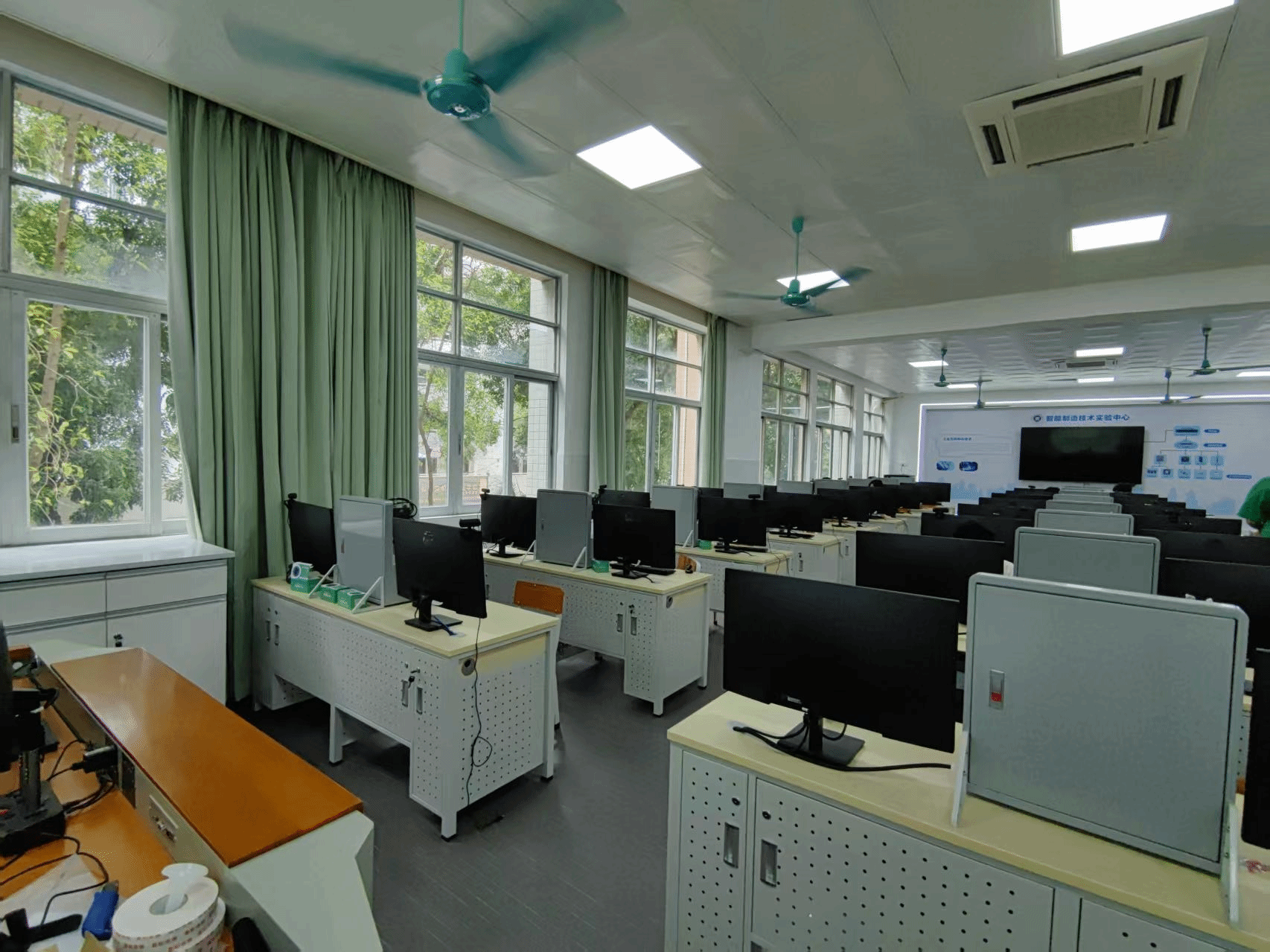 工业物联网实验室聚焦工业互联网与物联网技术应用,以智能制造生产线为原型构建虚实结合的教学平台,核心功能包括:通过工业沙盘动态模拟真实产线工艺流程及数据流,结合数字孪生系统实现半实物仿真;配备25套工业物联网综合实验装置,集成RFID、电流检测、光学尺寸检测等多类工业传感器及通信模块,支持传感器认知、数据采集、网络通信协议解析及设备监控等基础实验;依托工业接入与建模平台(26节点)实现设备数字镜像构建、指令下发与工况分析,通过工业可视化平台(26节点)开发2.5D/3D动态监控界面,完成工业大数据分析、可视化展示及远程管理;配套虚拟仿真软件包模拟智能制造产线全数据流,支撑网络通信、传感检测、系统集成等综合性实训。实验室服务于电子信息工程、自动化、人工智能、物联网工程等专业,覆盖《工业传感与检测技术综合实训》《工业互联网综合实训》课程,培养学生工业网络设计、系统集成及数据分析能力,对接智能制造产业技术岗位需求。