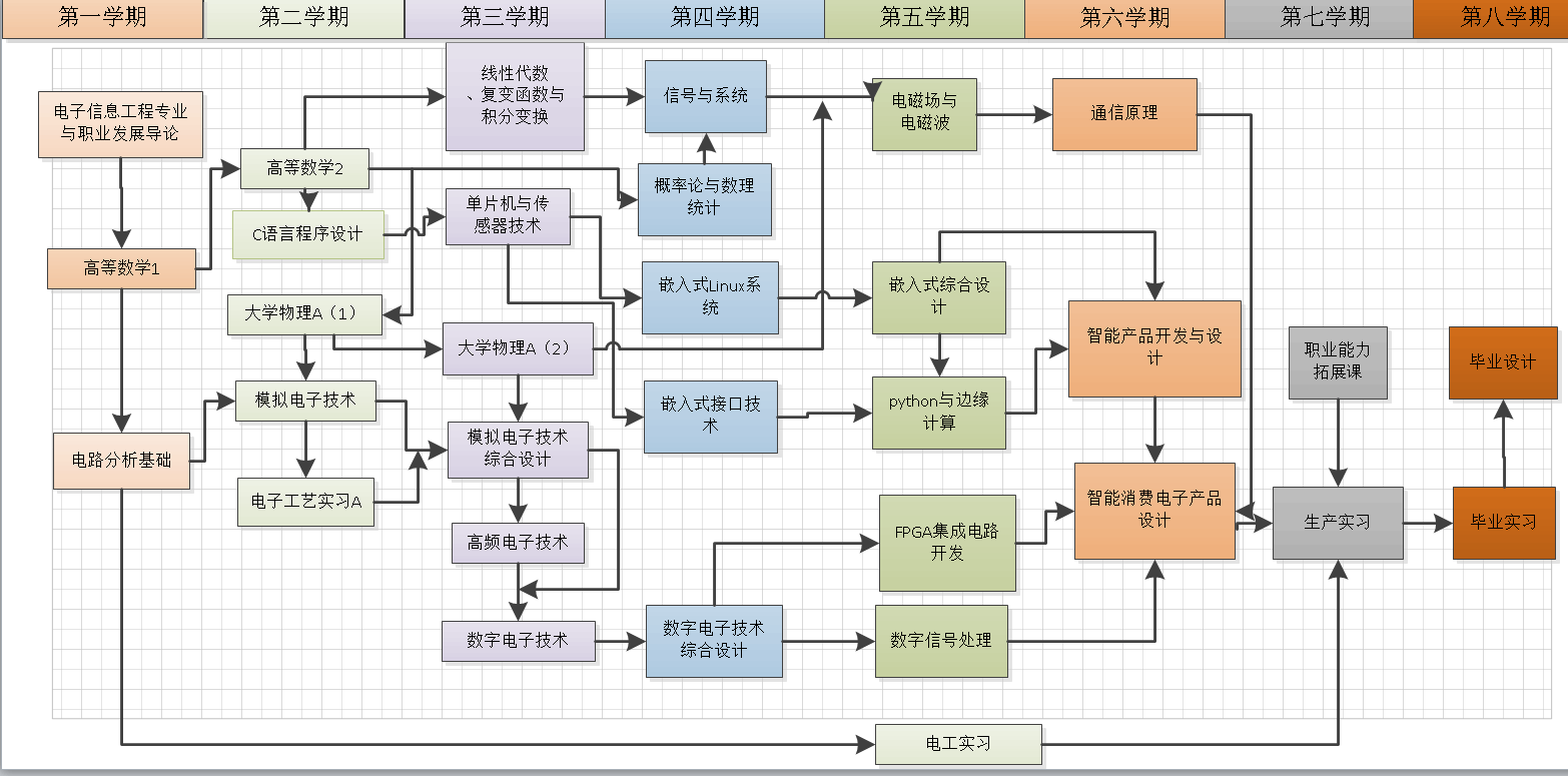 电路分析基础、模拟电子技术、数字电子技术、信号与系统、半导体物理与器件、单片机原理与应用、FPGA设计、数字集成电路设计、模拟集成电路设计、集成电路工艺原理。